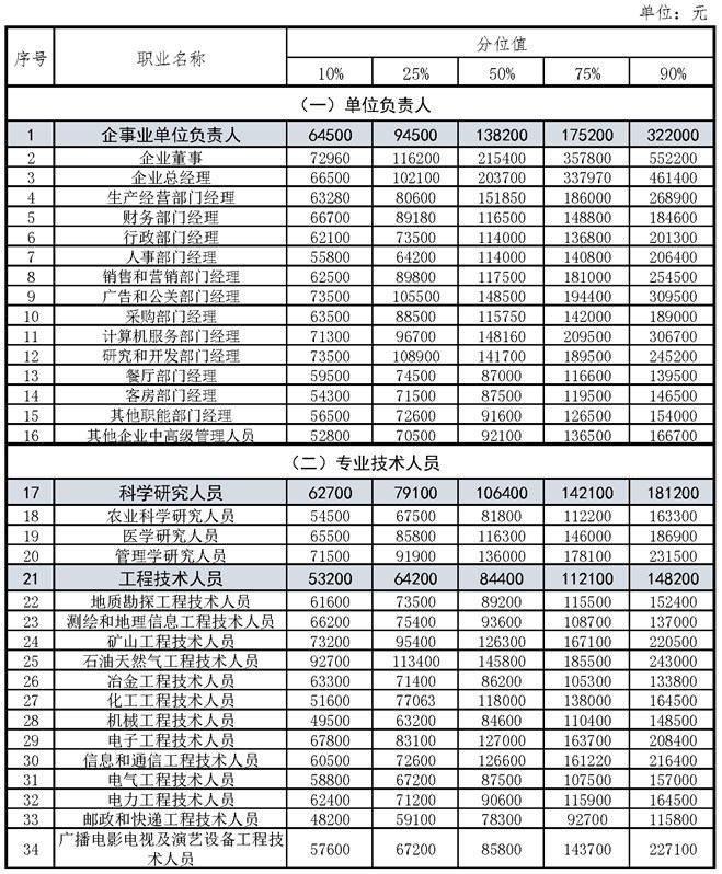 本次发布的人力资源市场工资指导价位供企业和劳动者参考,作为企业招聘、劳动者求职以及开展工资集体协商确定工资水平的参考依据。适用范围为我市企业员工,不包括我市公务员和事业单位职员。