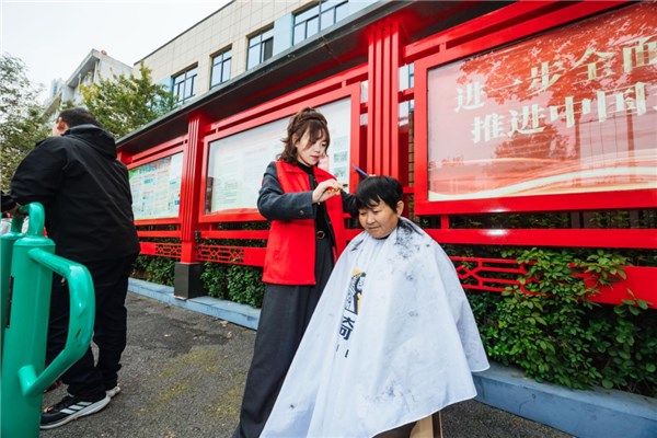 活动现场,戏曲表演作为重点环节精彩纷呈。《朝阳沟》选段引发居民共鸣跟唱,《包青天・见皇姑》中“包公”的演绎赢得阵阵掌声。便民服务专区同步开展多项志愿服务:青年志愿者协助儿童交换玩具、引导文明交流;党员律师提供法律咨询并发放宣传手册;义诊区为居民检测血压血糖,提供健康建议;理发修补摊位为老人免费服务;招聘区帮助青年对接岗位、完善简历,获得居民一致好评。