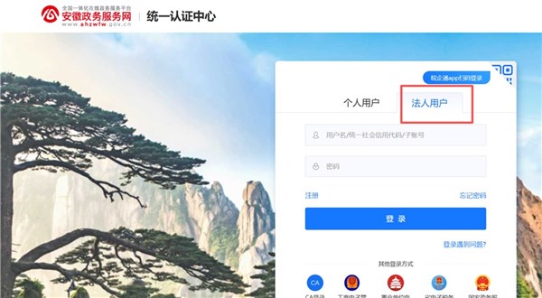 第二步:法人用户登录。