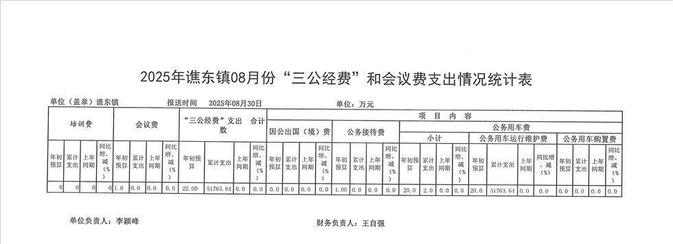 | 名称: | 2025年谯东镇8月份“三公经费”和会议费支出情况统计表 |