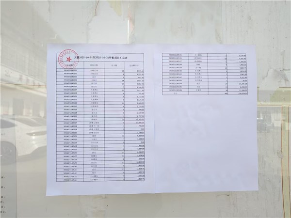 | 名称: | 大裴村2025年10月份惠民惠农资金发放情况村务公开栏公示 | 文号: | 无 |