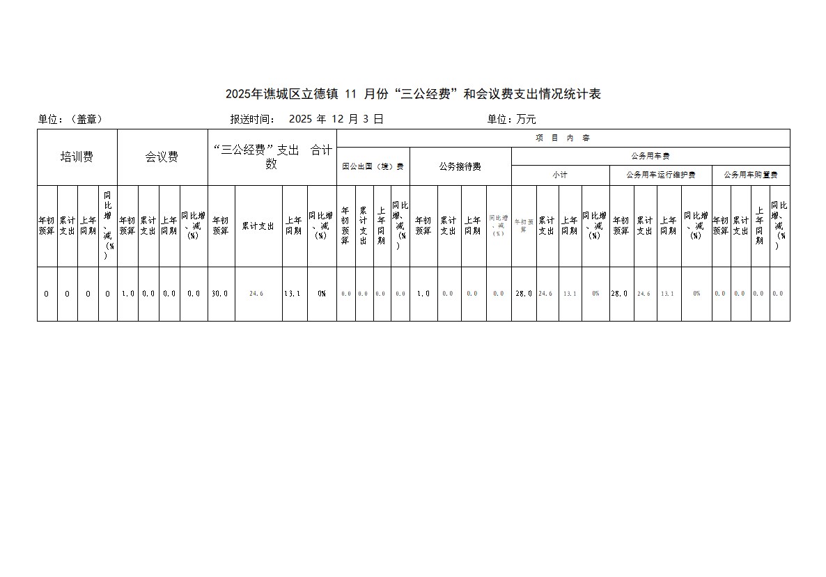 | 名称: | 2025年谯城区立德镇11月份“三公经费”和会议费支出情况统计表 |
