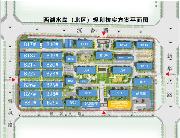 由亳州金地中联置业有限责任公司开发建设的西湖水岸(北区)项目,坐落于亳州市谯城区沉香路以南、雪枫路以东,占地总面积108.340亩,,规划建设项目总面积207252.28平方米,地上共计35栋楼(其中住宅27栋、商业2栋,配电房5栋,幼儿园1栋)以及普通地库、人防地库。根据工程施工进度不同,为保证购房者权益顺利完成房屋交付申请分两次进行规划核实: