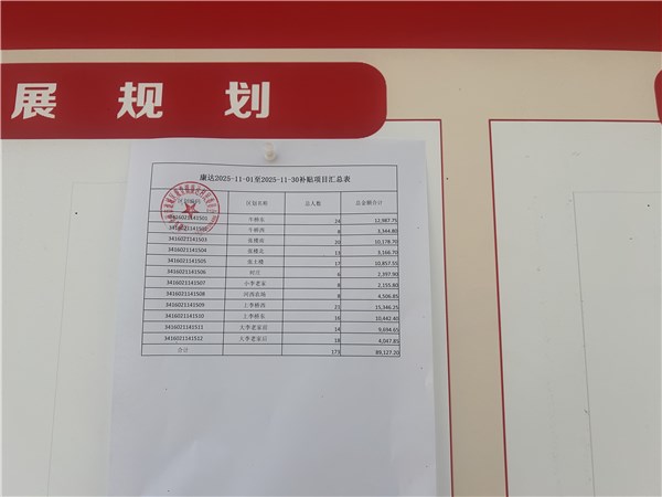 | 名称: | 康达村2025年11月份惠民惠农资金发放情况村务公开栏公示 | 文号: | 无 |