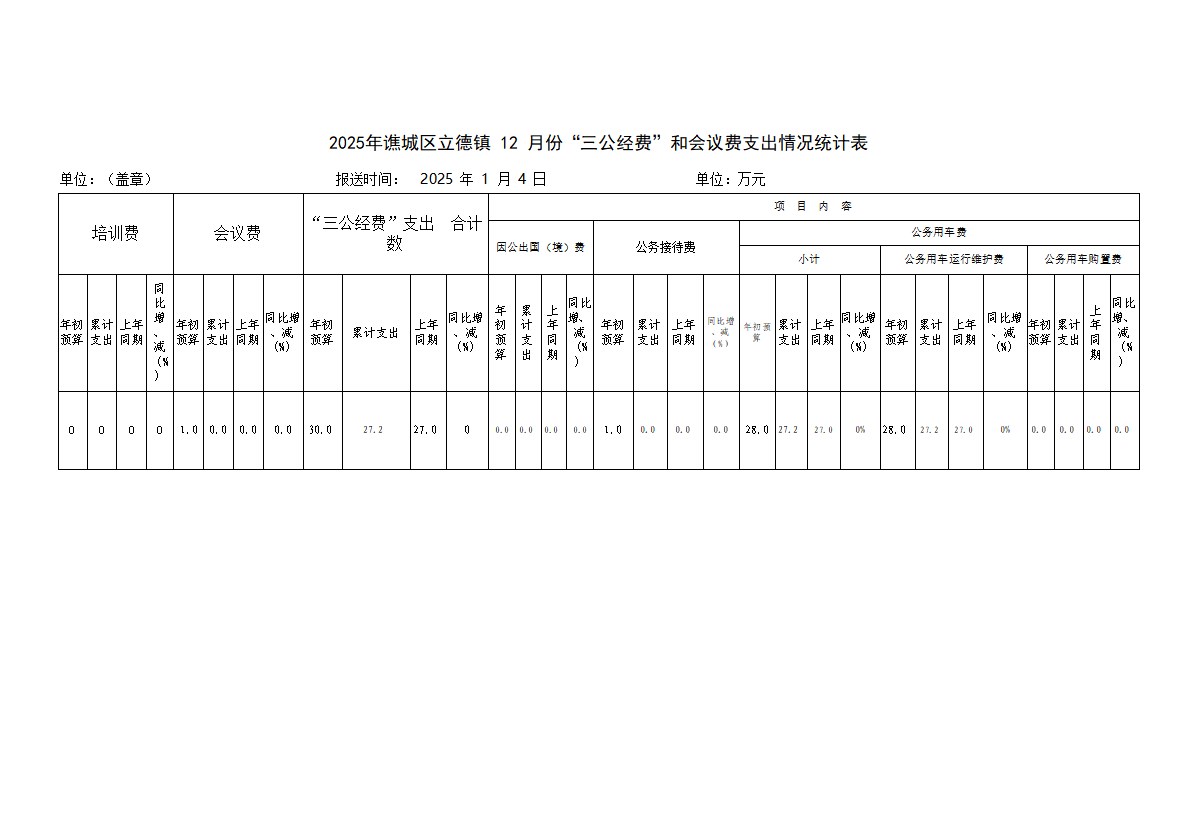 | 名称: | 2025年谯城区立德镇12月份“三公经费”和会议费支出情况统计表 |