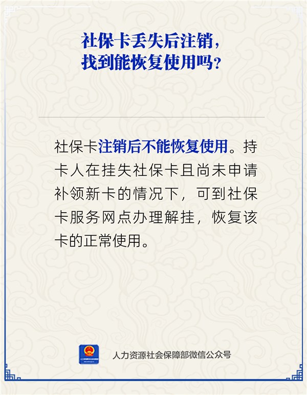 | 名称: | 社保卡丢失后注销,找到能恢复使用吗? |