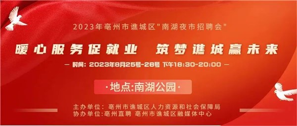 8月25号-8月27号下午18:30可到南湖夜市招聘会现场,直接进行投递。或登录亳州直聘小程序对招聘会现场企业进行投递简历。