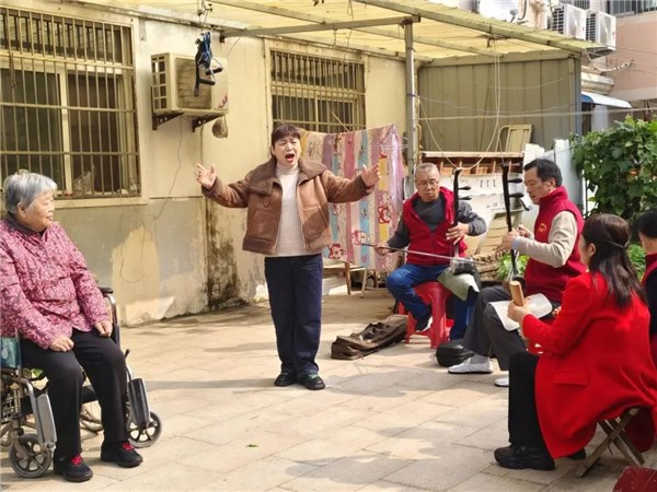 刁文兰年轻时就爱听戏,但因患有偏瘫、行动不便,已经很久没有出门听戏,这成了她的一件心事。马元社区志愿者入户走访时,了解到刁文兰的听戏需求,于是联系辖区志愿服务组织“芍花剧社”,安排送戏上门服务,为老人专门举行了一场戏剧演出。