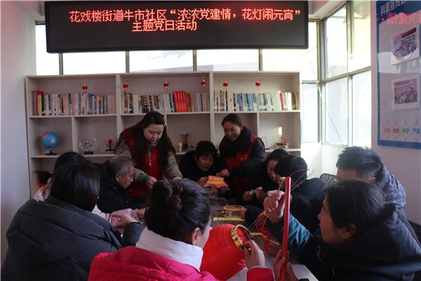 在元宵佳节即将来临之际,为深入传承中华优秀传统文化,同时丰富社区党员群众的精神文化生活,2月7日,亳州市谯城区花戏楼街道牛市社区党总支开展“话党建 闹元宵 做花灯 ”主题党日活动。