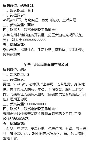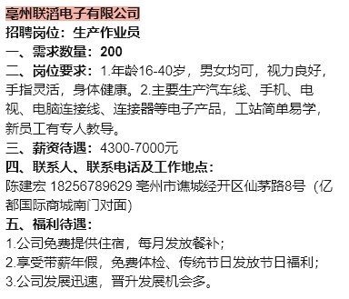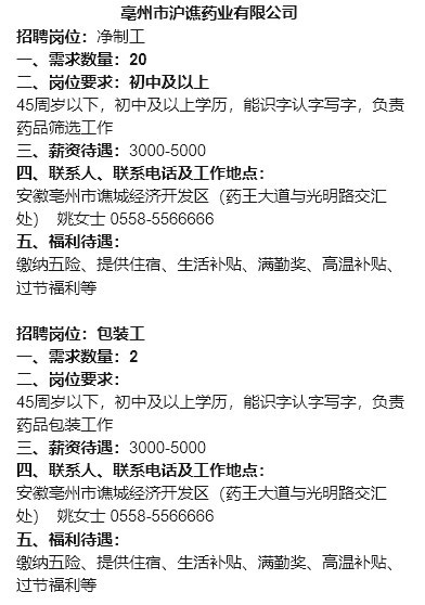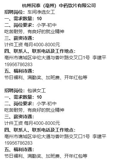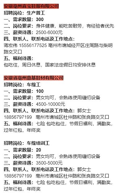 【岗位信息】小谯就业优先岗位行动(人社招第二十八期)