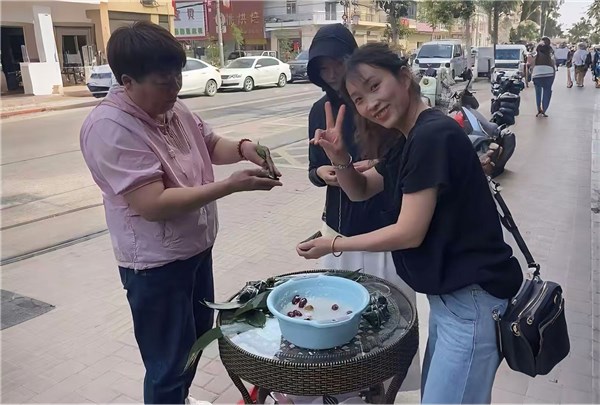 许多年轻人是第一次包粽子,在长辈们的耐心指导下,也逐渐掌握了要领,包出了有模有样的粽子。一位参与活动的群众笑着说:“以前都是买粽子吃,今天自己动手包,感觉特别有意义,也让我更加了解了端午节的传统文化。”活动结束后,工作人员将包好的粽子分发给现场的群众,让大家把这份节日的祝福带回家。一串串粽子,传递的不仅是美味,更是浓浓的干群情谊和美好的节日祝福。