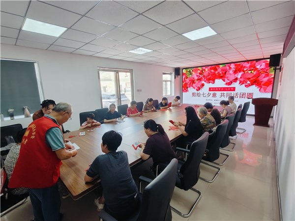 各位热情高涨,纷纷拿起红纸、剪刀动手创作。大家开始折叠,剪出寓意“永结同心”的双喜图案;认真裁剪可爱的牛郎织女形象;还相互交流技巧,分享创作思路,活动室里满是欢声笑语。2小时后,一幅幅充满七夕元素的剪纸作品相继完成,有象征爱情的鸳鸯、寓意吉祥的莲花,还有饱含祝福的剪纸。