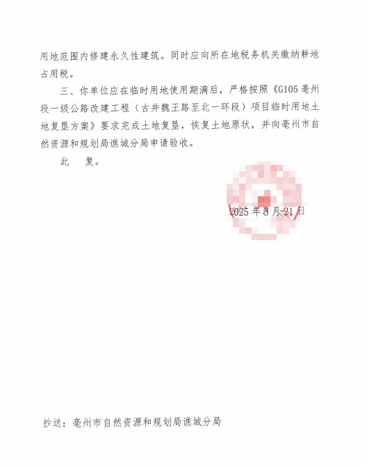 亳自然资规临用【2025】12号临时用地批复