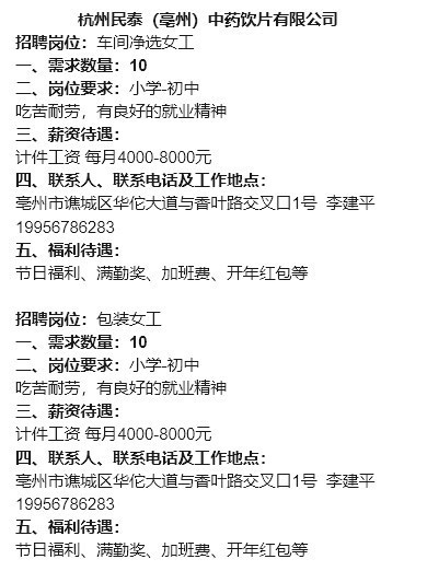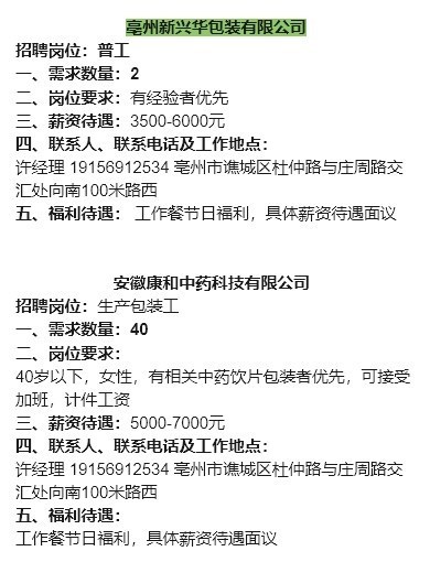 | 名称: | 【岗位信息】小谯就业优先岗位行动(人社招第二十八期) | 文号: | 无 |