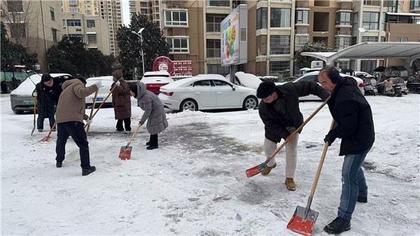 除雪现场,大家不畏严寒,利用铁锹、扫帚等工具,经过多小时的集中奋战,彻底清理了社区主干道、人行步道斜坡等重点区域的积雪和暗冰,消除了安全隐患。活动过程中,社区部分居民和商户也自发加入,形成了齐心协力、共建家园的良好氛围。