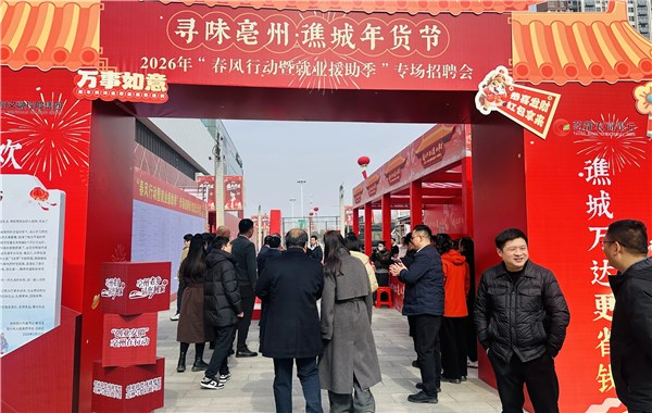 值得一提的是,此次年货市集不仅是采购年货的胜地,更是就业找工作的好平台。区人社局借农民工返乡热潮,依托此次年货节,同步开展2026年“春风行动暨就业援助季”专场招聘会活动。现场设置“致亳州老乡的第四封家书”宣传栏、返乡创业人才成果展,吸引9家企业现场设岗,带来1168个优质岗位;同时搭建企业招聘信息展示墙,集中发布71家用工企业的2579个岗位信息,让广大群众实现“办年货、找好岗”一站式便捷体验。