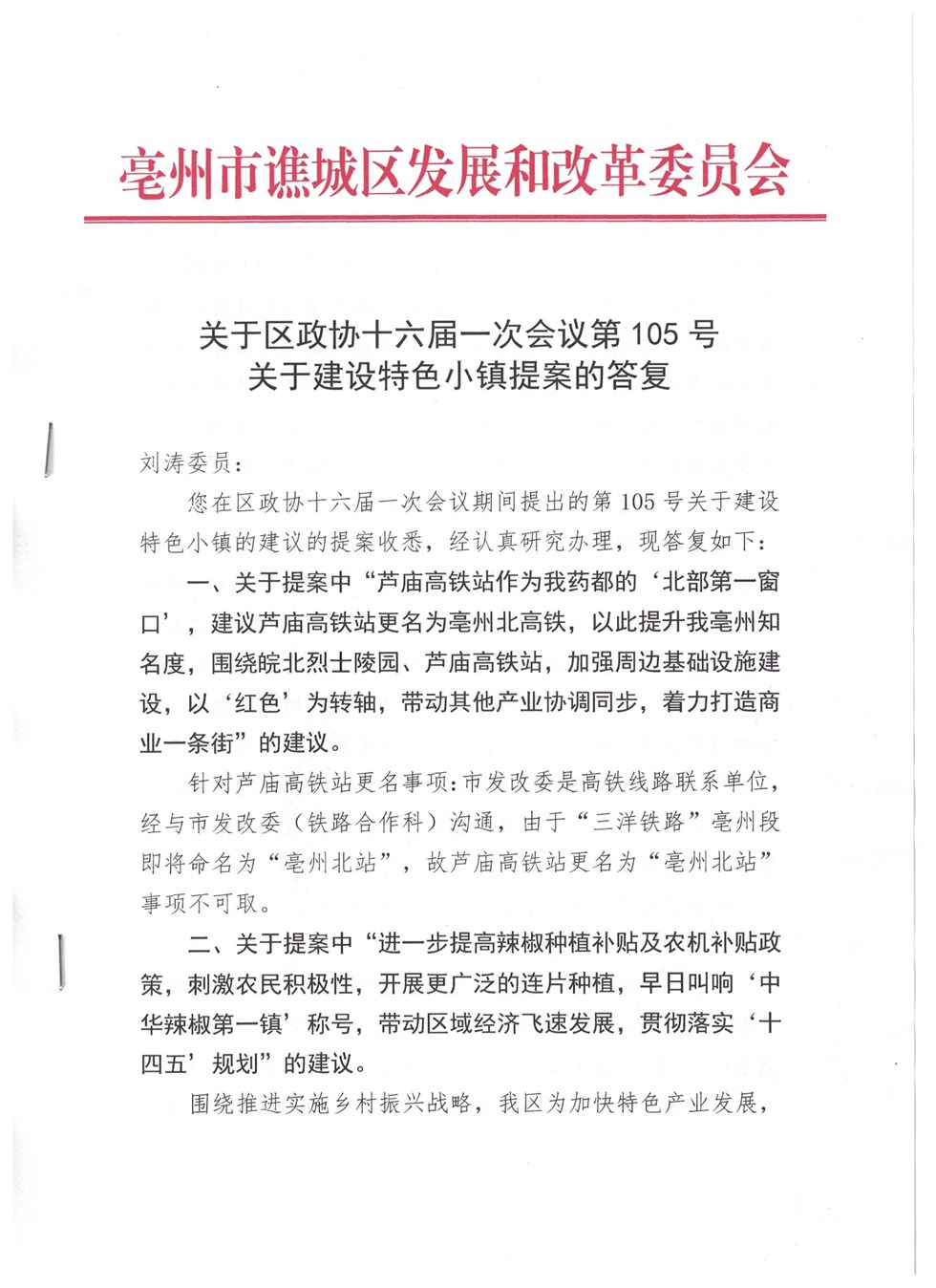 | 名称: | 关于区政协第十六届一次会议第105号 关于建设特色小镇提案的答复 | 文号: | 谯政办秘〔2022〕29号 |