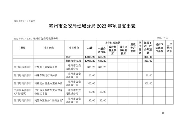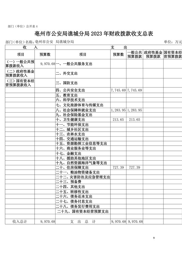 | 名称: | 亳州市公安局谯城分局2023年预算公开 | 文号: | 无 |