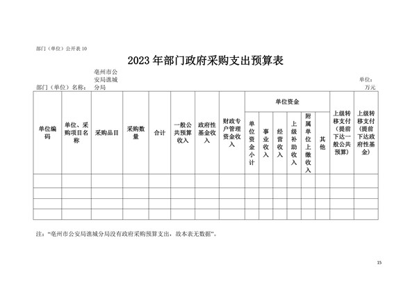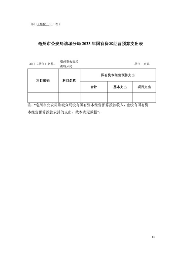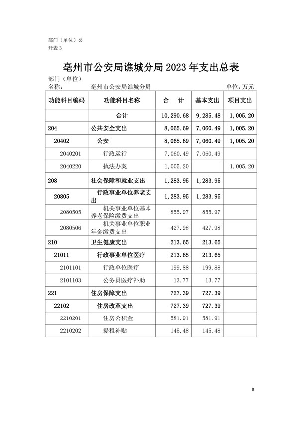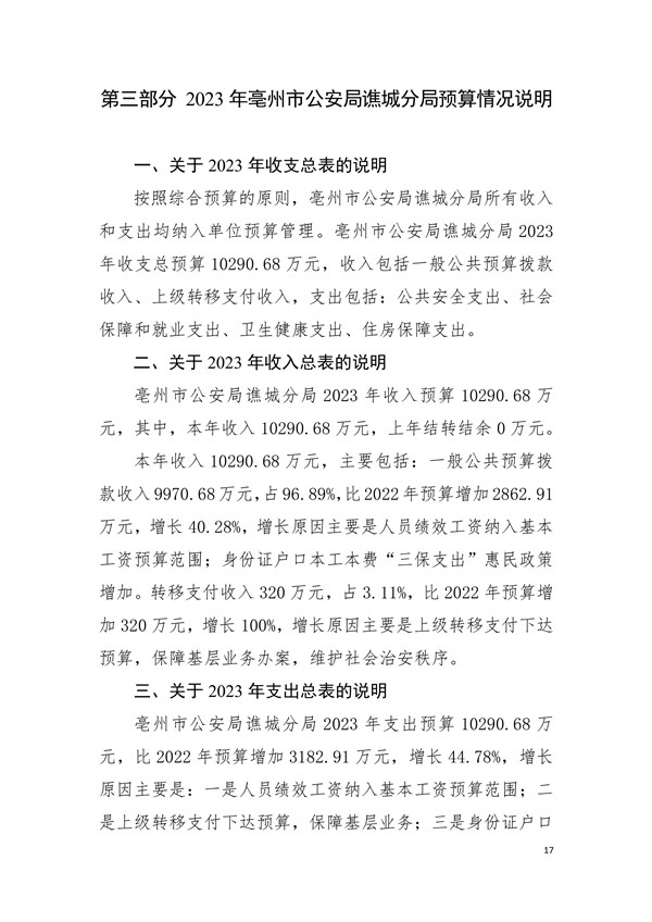 | 名称: | 亳州市公安局谯城分局2023年预算公开 |