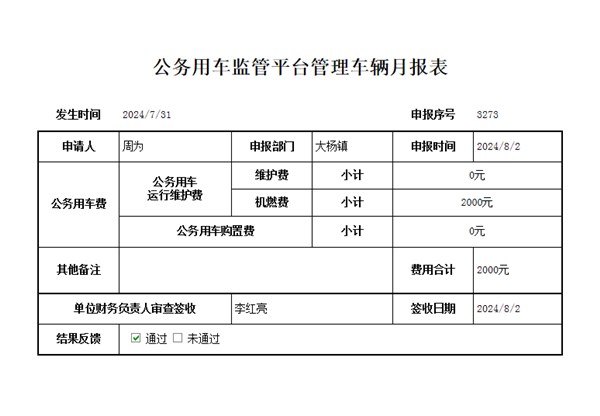 | 名称: | 谯城区大杨镇2024年7月公务用车监管平台管理车辆月报表 |