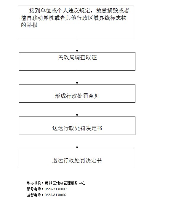 5、对故意损毁或者擅自移动界桩或者其他行政区域界线标志物的处罚