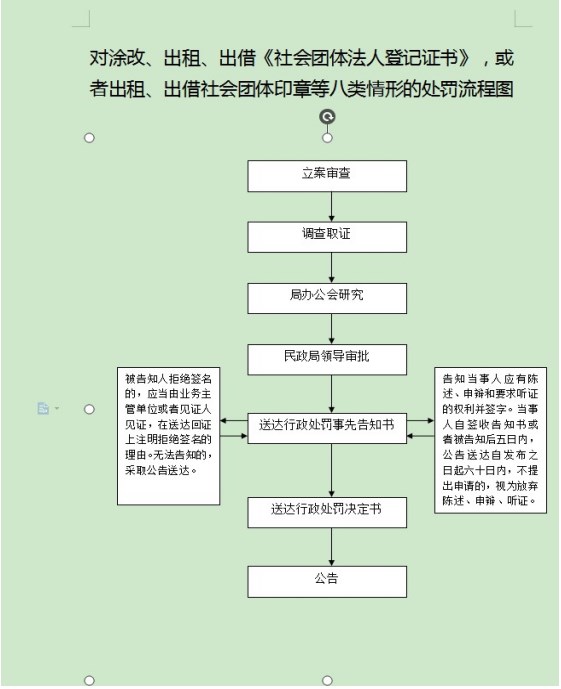 13、对涂改、出租、出借《社会团体法人登记证书》,或者出租、出借社会团体印章等八类情形的处罚流程图