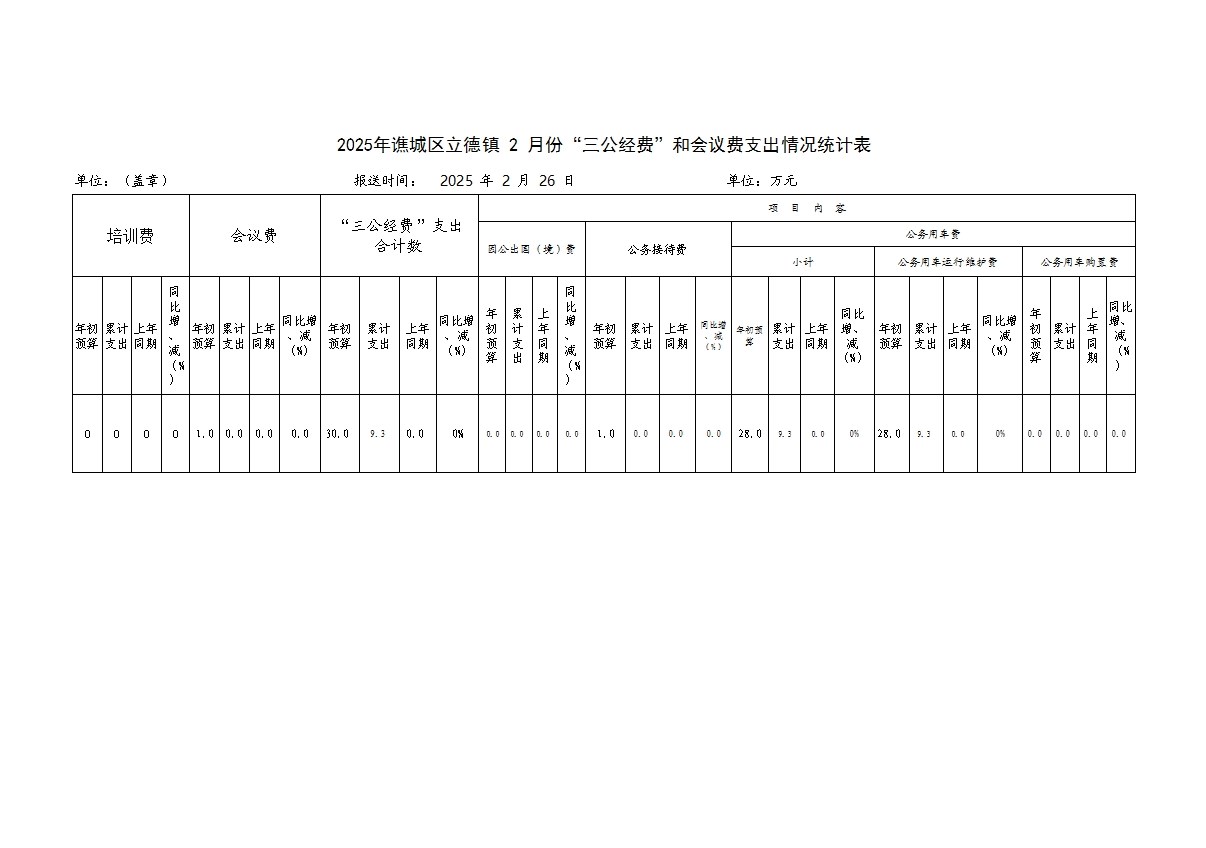 | 名称: | 2025年谯城区立德镇2月份“三公经费”和会议费支出情况统计表 |