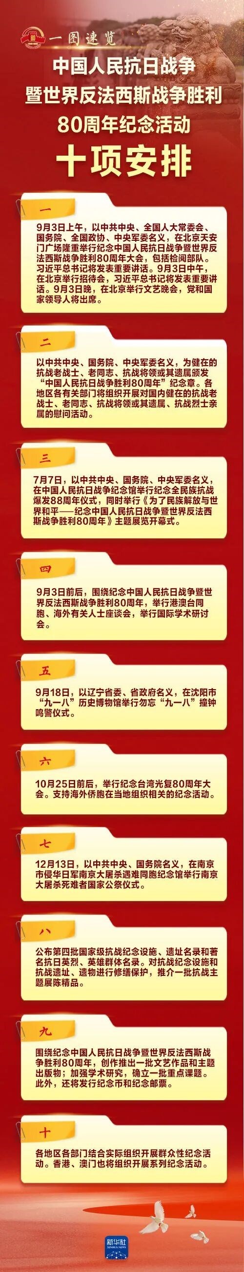 | 名称: | 【主动回应】抗战胜利80周年纪念活动十项安排! |