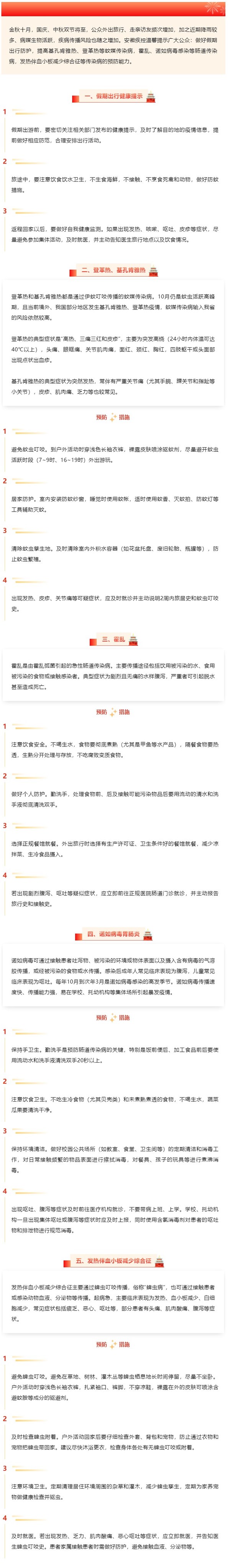 | 名称: | 【公共卫生类-预警信息】国庆、中秋双节暨十月卫生防病提示 |