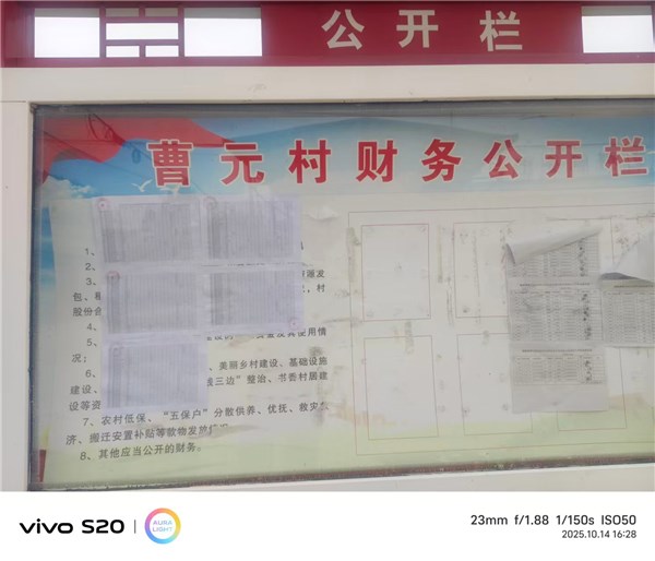 | 名称: | 谯城区颜集镇曹元村2025年10月份惠民惠农资金发放情况村务公开栏公示 | 文号: | 无 |