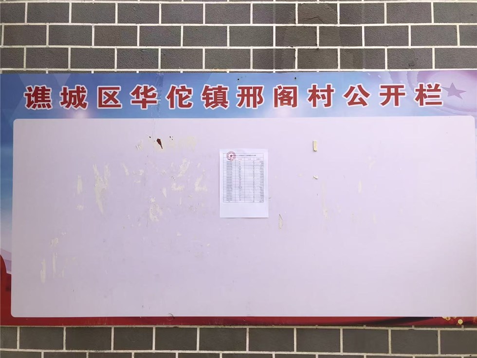 | 名称: | 华佗镇邢各村惠民惠农补贴村务公开栏公示情况 | 文号: | 无 |