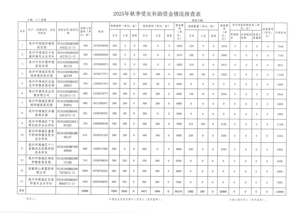 | 名称: | 2025年秋季受灾补助资金情况核查表 |