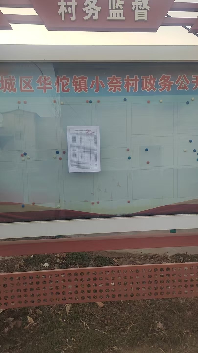 | 名称: | 华佗镇小奈村惠民惠农补贴村务公开栏公示情况 | 文号: | 无 |