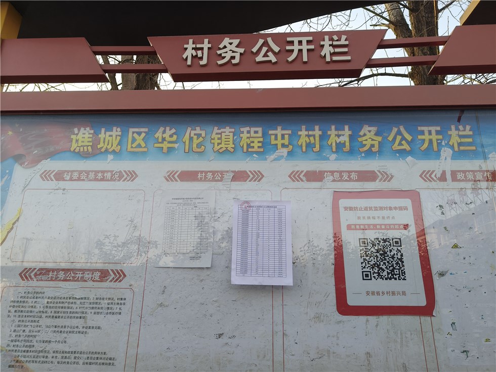 | 名称: | 华佗镇程屯村惠民惠农补贴村务公开栏公示情况 | 文号: | 无 |