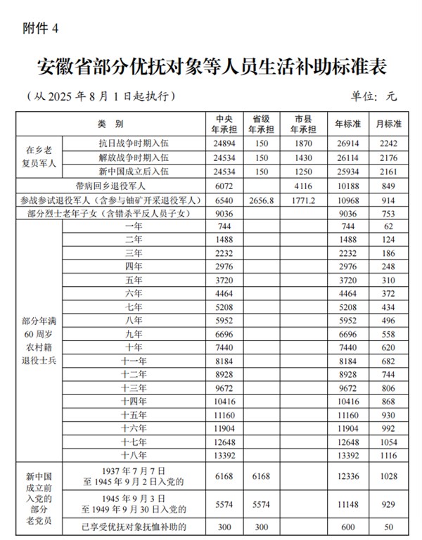 | 名称: | 【转载上级】安徽省退役军人事务厅 安徽省财政厅 关于调整部分优抚对象等人员 抚恤和生活补助标准的通知 |